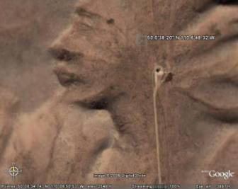 Use Google Earth yourself to zoom down on the area and take your own photos! At the end of the article are more downloaded pictures of the Canadian terrain that appears as an INDIAN. After examining details of the image, the conclusions are obvious. The copper colored hills, like an Indian Head penny, were shaped and not natural formations. What is an Indian doing in Canada?