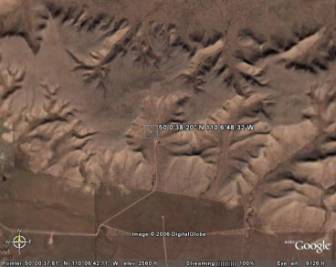 Found by Donna Epstein; she emailed me this recent discovery, the 13th location! IT WAS THE LAST PIECE TO A PUZZLE THAT HAD HAUNTED ME SINCE 1974. She had read my (little-known) 'Wireless World' article and knew I had been in search of: SOMETHING just north of the U.S. and precisely on the border of Alberta and Saskatchewan. This is the exact area of the Indian carved in the mountains. The article that states the MAP-GRID prediction was posted on the World-Mysteries.com and Farshores.com websites ever since 2002; before piece #12 and #13 were found (Brazil & Canada). The coincidence is these just happen to be CANADIAN UFO and Mystery websites.